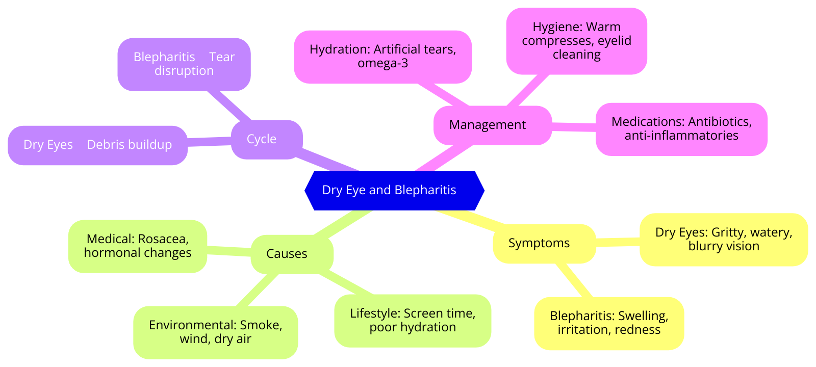 Think of your eyes as delicate plants in need of regular watering and protection from external elements. Dry eyes represent a lack of nourishment for these plants, leaving them vulnerable and wilted. In contrast, blepharitis acts like pesky weeds invading the soil around these delicate plants, hindering their growth and overall health. To ensure the vitality of your “eye garden,” a balanced combination of hydration (for dry eyes) and weed removal (for blepharitis) is essential to promote clear vision and comfort.