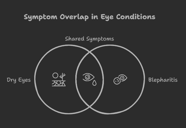 Some may argue that treating one condition automatically alleviates the other. However, while improving dry eye symptoms through artificial tears or medications may provide temporary relief for blepharitis-related discomfort, addressing the root cause of each condition is crucial for long-term management. Both conditions have distinct characteristics and require tailored treatments for effective control. It’s essential to recognize that a holistic approach targeting both dry eyes and blepharitis is key to achieving optimal eye health.